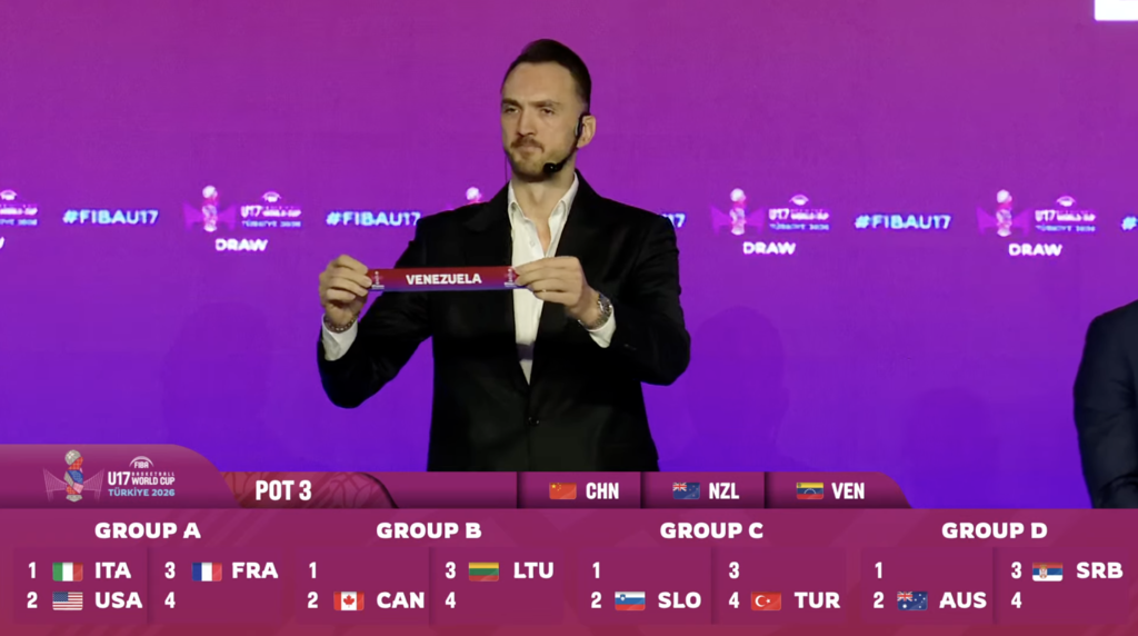 Se realizó el sorteo de la fase de grupos de la World Cup FIBA U17 2026 en Estambul, Turquía, sede del evento. Venezuela fue sorteada en el Grupo D, junto a Australia, Serbia y Costa de Marfil.